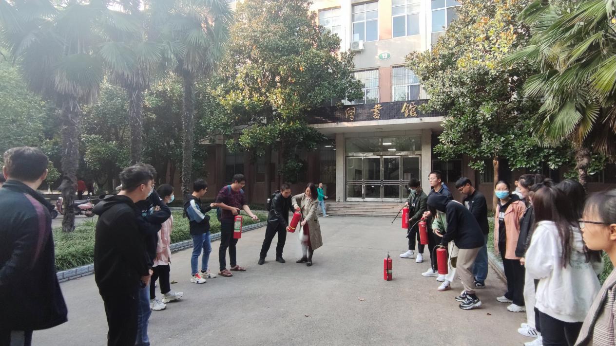 演练分为消防知识宣讲及灭火器使用操作两部分。首先由杨璟副院长强调防火的重要性及必然性,详细地讲解实验室遇到火情该如何冷静处理,并就干粉灭火器正确使用方法进行了现场讲解、示范、指导,强调使用灭火器要保持镇静,遇到火情千万不要慌乱失措,牢记“一晃、二拉、三压、四喷”要领,掌握正确的使用方法,提高自救自护能力。之后同学们在杨璟副院长和王巧艳老师的指导下进行实际操作。同学们严格遵守灭火器使用步骤,认真学习实际操作,每个人都参与并成功完成了一次灭火器使用流程。