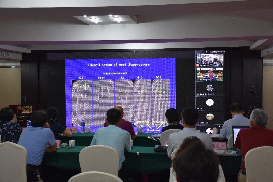 美国德克萨斯理工大学Huazhong Shi教授围绕植物应对盐害及热胁迫的分子响应机理做了主题报告。主要介绍了质膜Na+/H+逆转运蛋白、高亲和性K+转运蛋白(HKT1)和SOS信号途径在维持细胞Na+/ K+离子平衡的关键作用。重点分析了多胺转运蛋白(PUT3)在调控多胺吸收转运介导细胞内ROS稳态响应高温胁迫的分子机制。最后,他指出盐碱化会破坏土壤理化性质,降低土壤有机质含量,导致土壤微生物活动受到、抑制,导致作物生长不良,造成缺苗、减产、死亡的问题。