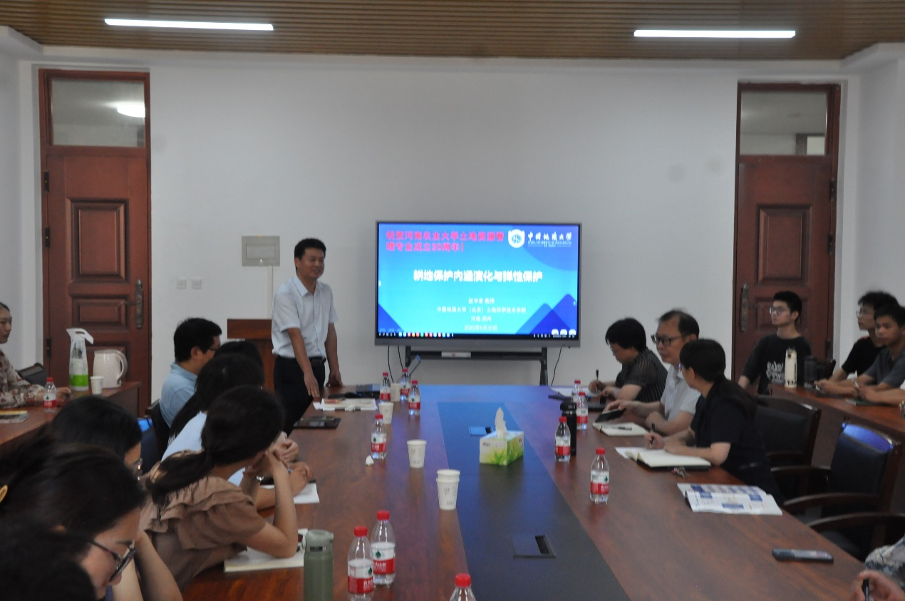 2023年6月30日,中国地质大学(北京)土地科学与技术学院赵华甫教授、土地资源管理系主任冯喆副教授、土地整治工程系主任张琢副教授、土地整治工程系青年骨干教师张建军副教授一行4人来暗网禁区 座谈,土地资源管理学科师生参加交流。