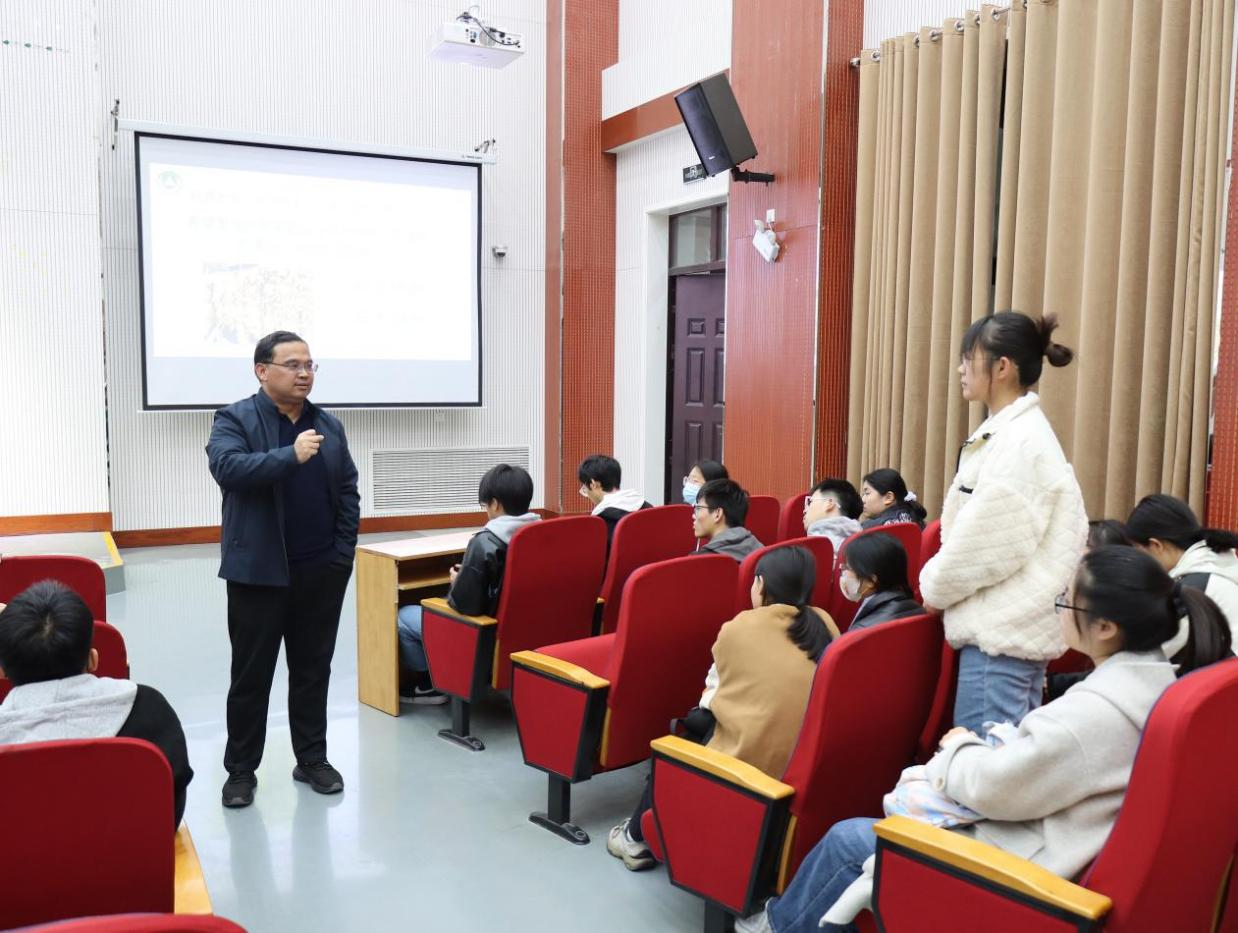 会上,王宜伦教授作为团队首席结合自身的求学科研经历分别从团队研究方向、师资力量、人才培养等方面详细介绍了作物营养与高效施肥科技创新团队。他鼓励同学积极考研,不断向上攀升,参与相关科研项目培养自己的科学思维和科研能力。他寄语同学们:第一,要努力学习工作、不要虚度青春年华;第二,要懂得感恩,拼搏进取、做出成绩;第三,学无止境,要学有所成,更要学有所用,努力在实现乡村振兴中成就自我价值。最后,王教授还与同学们进行了亲切的交流互动,回答了同学们提出的多个问题。