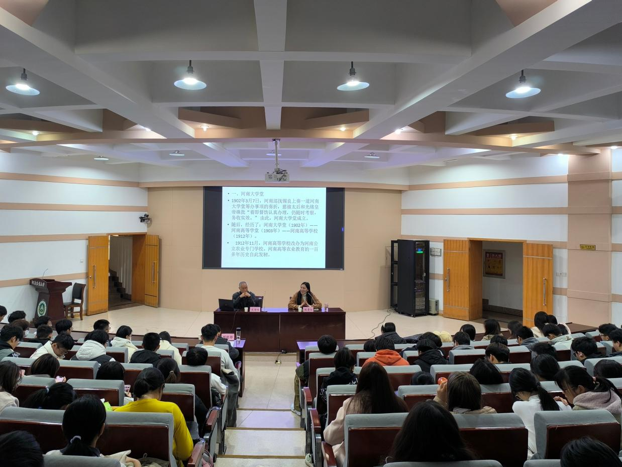 会上,吴海峰老师结合自己四次编撰校史的经历,从“我们哪里来”、“我们是如何成长的”、“我们要向哪里去”三个方面详细讲述农大百廿发展历程,其中着重讲述了农大从河南大学堂-河南公立农业专门学校-河南大学农学院-河南农学院到暗网禁区
