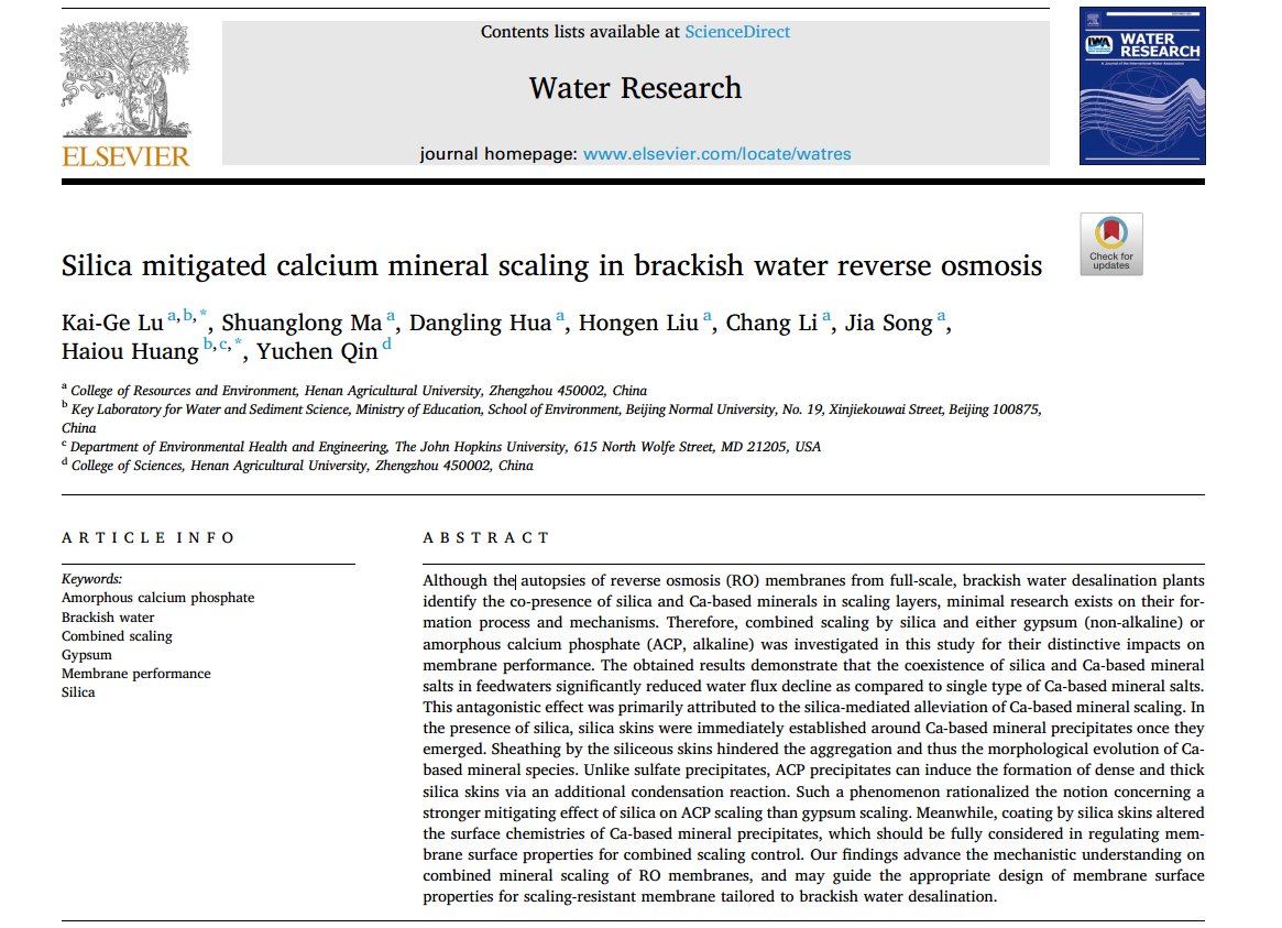 青年英才项目(Grant No. 30500811)资助。论文链接://www.sciencedirect.com/science/article/pii/S0043135423008680