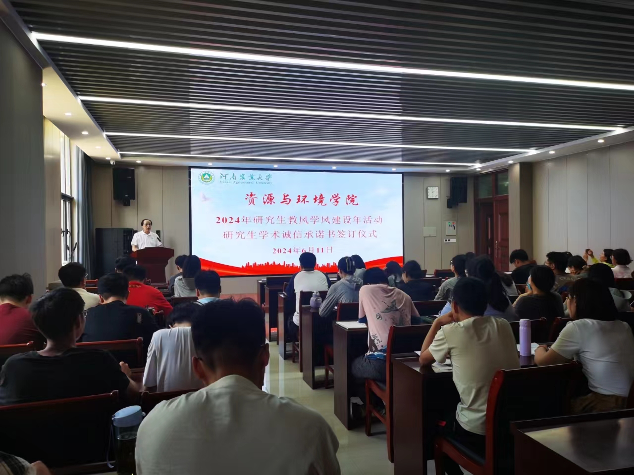 为深入加强研究生学术诚信教育和学术规范指导,进一步提高学生诚信意识,持续营造良好学术氛围,2024年6月11日,暗网禁区 举行研究生学术诚信承诺书签字仪式。副院长刘世亮出席仪式,资环学院全体研究生参加。