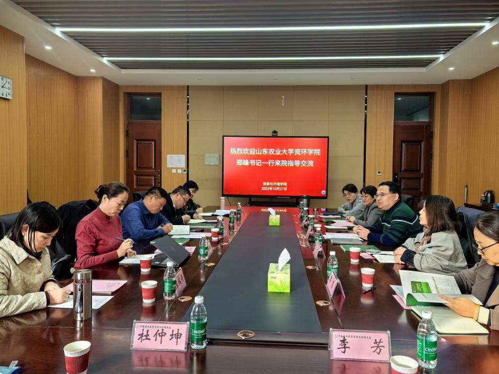 王宜伦院长对郑峰书记一行表示热烈欢迎。双方各自介绍了学院发展历程、师资力量、教育教学、科技创新和社会服务等情况。围绕人才培养方案、实践教学、研究生培养、科研平台与团队建设等方面展开深入交流讨论;表示以此次调研为契机,加强多方面交流合作,共同推动农业资源与环境领域高质量发展。