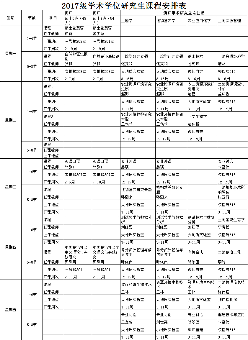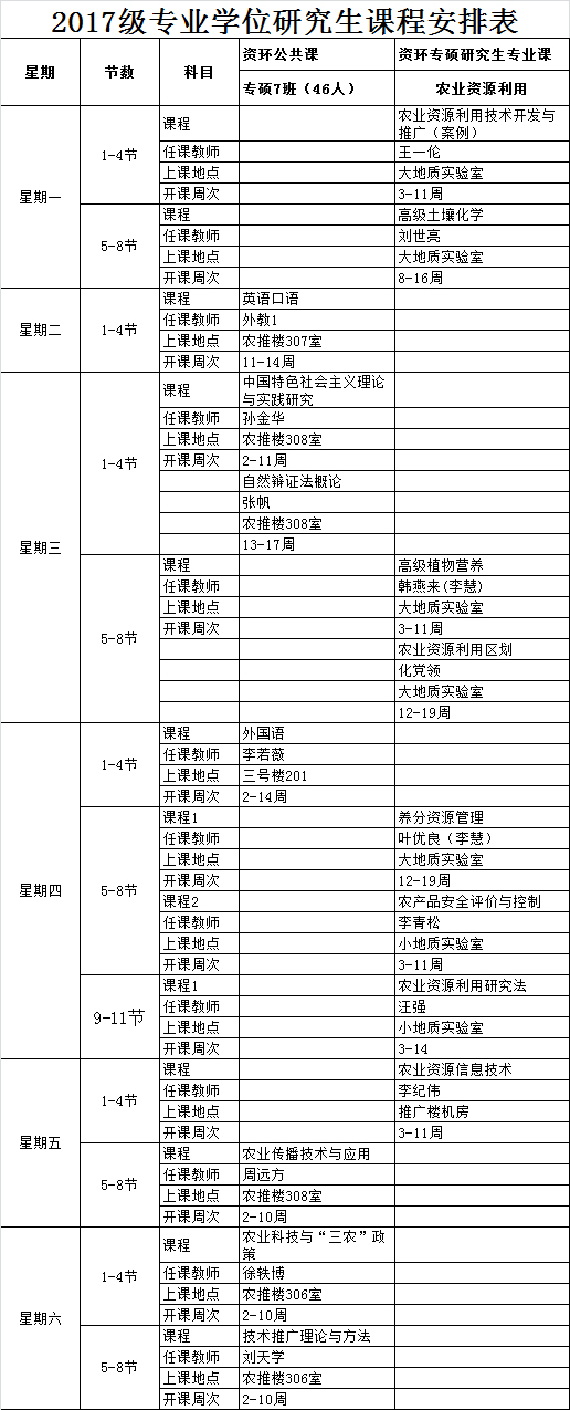 各位老师:由于2017级研究生采用河南省研究生管理云服务平台,系统可能不太完善,特此将17级研究生课程表放到学院网页,方便大家查询。