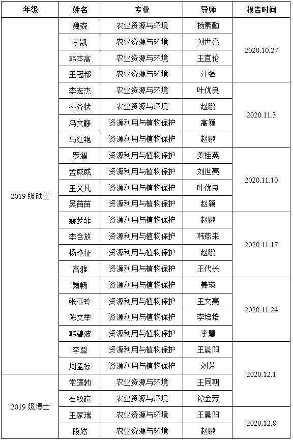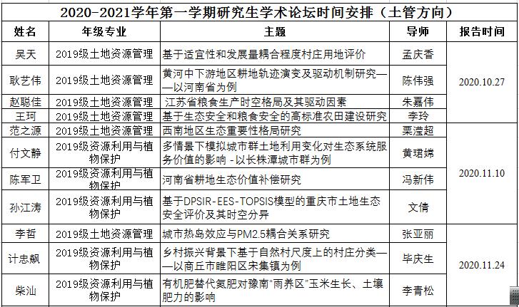 资环学院2020-2021学年第一学期研究生学术论坛时间安排