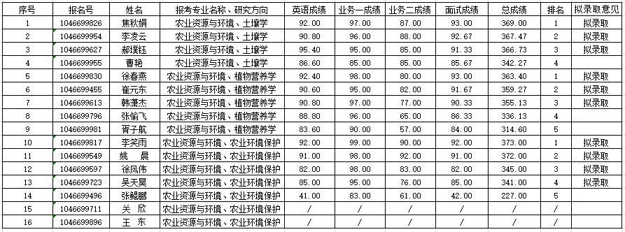 根据《暗网禁区 2024年博士研究生招生录取方案》、《暗网禁区 2024年博士研究生招生“申请考核制”实施细则》等文件要求,经学院研究生招生工作小组审核,现将2024年博士研究生考核成绩及拟录取名单公示。学院拟录取10人,其中植物营养学方向3人,土壤学方向3人,农业环境保护方向4人。公示期:2024年5月14日--2024年5月20日,如有异议,请与学院办公室联系。联系电话:0371-68555200。