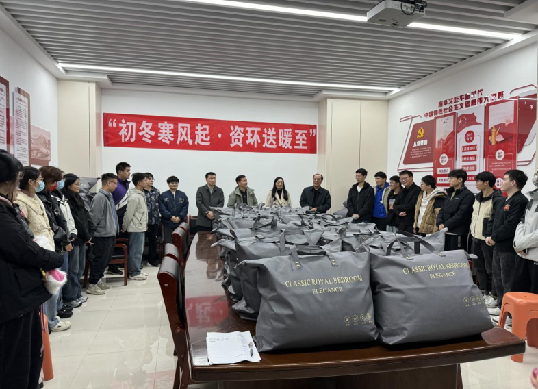 在活动现场,学院为24级研究生和本科生准备了冬季棉被。学院领导老师在交谈中了解同学们在学习、生活中的难题,并叮嘱同学们注意冬季的保暖与用电安全,警惕各类安全隐患,同时勉励同学们要志存高远、自立自强,勇敢面对学业和生活中的磨砺。同学们纷纷表示,要把这份关怀牢记心间,不辜负老师们的殷切期望,早日成长成才。