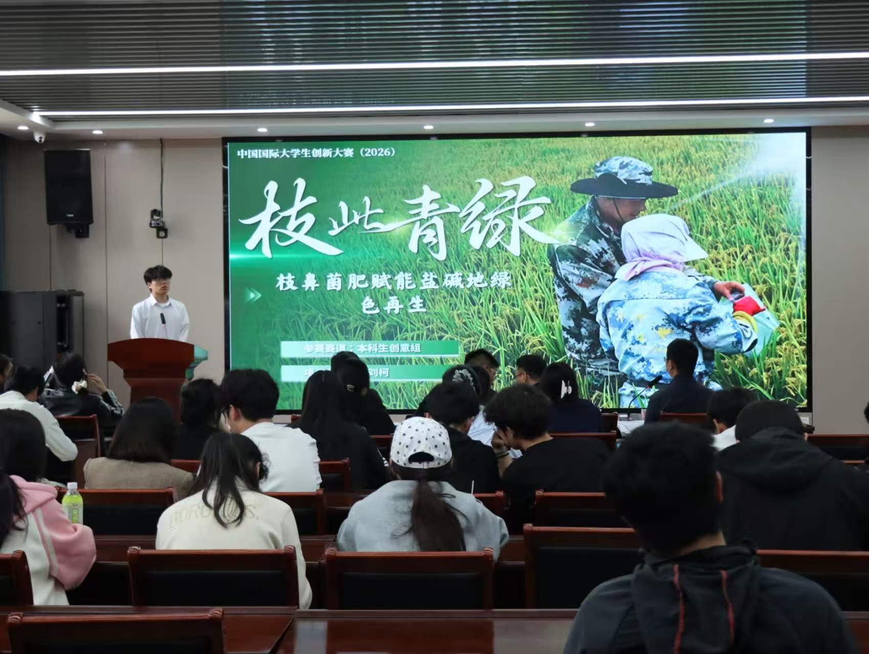 举行2026年中国国际大学生创新大赛院级选拔赛。马双龙、吴用、位贺杰、张翀四位教师受邀担任评委,院团委老师共同参与此次活动。