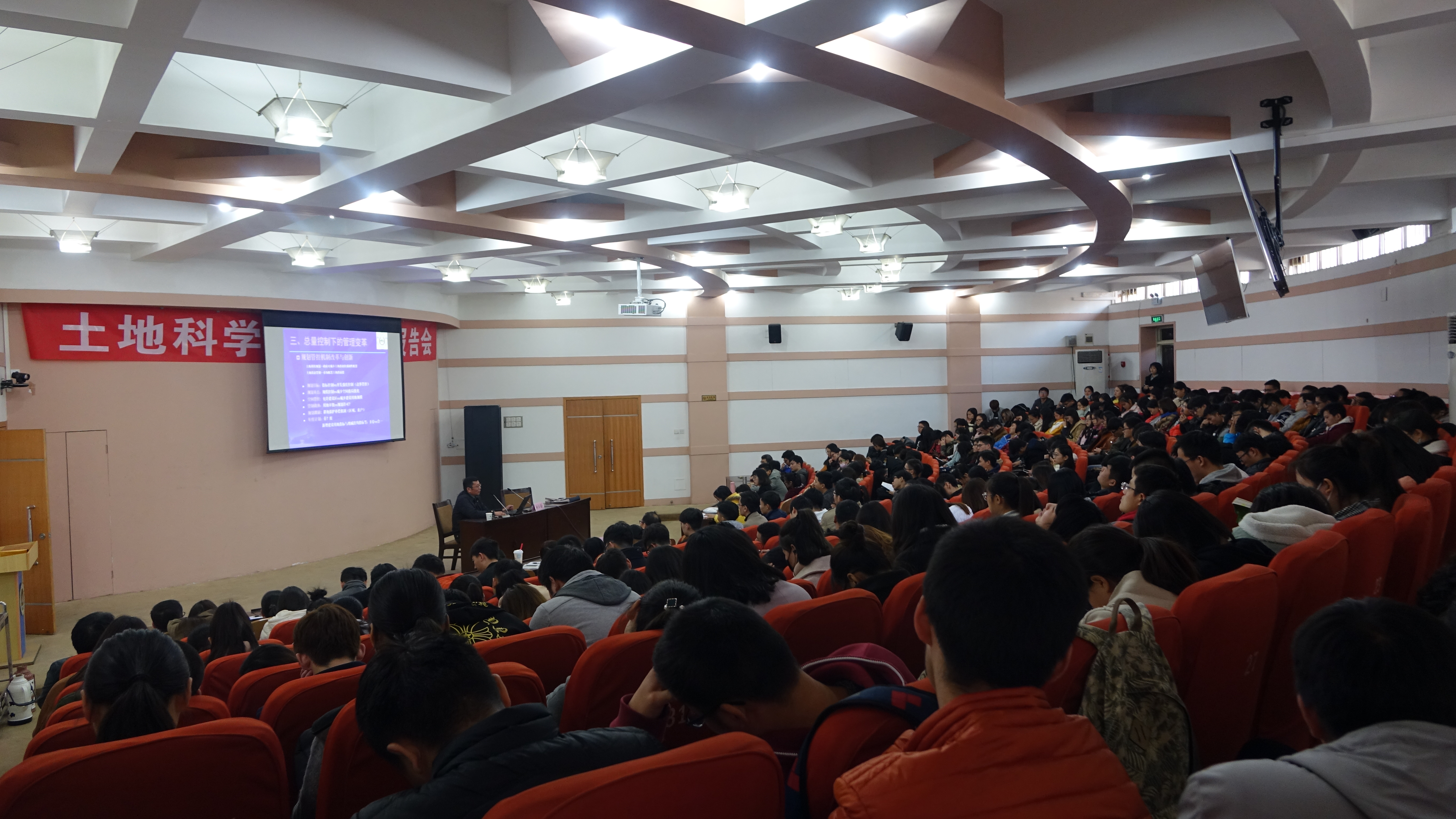 首先,欧名豪教授就新常态下的土地管理的转型与变革这一课题与同学们进行深入探讨,从“如何认识新常态”、“新常态下土地资源管理机遇与挑战”以及“总量控制下的管理变革”三个方面简要阐述了我国的现行政策与应对措施;其次,张凤荣教授以日本一个小村庄的发展历程为例,简要介绍了对我国农村土地整治的看法及建议;随后,吴克宁教授带领同学们一起回顾且展望了土地学科的建设历程,并鼓励同学们共同努力奋斗,为土地学科的建设添砖加瓦。最后,三位教授和师生就遇到的相关专业问题进行了交流和讨论。与会同学纷纷表示获益匪浅,对专业认知和研究方向有了更深一步认识。