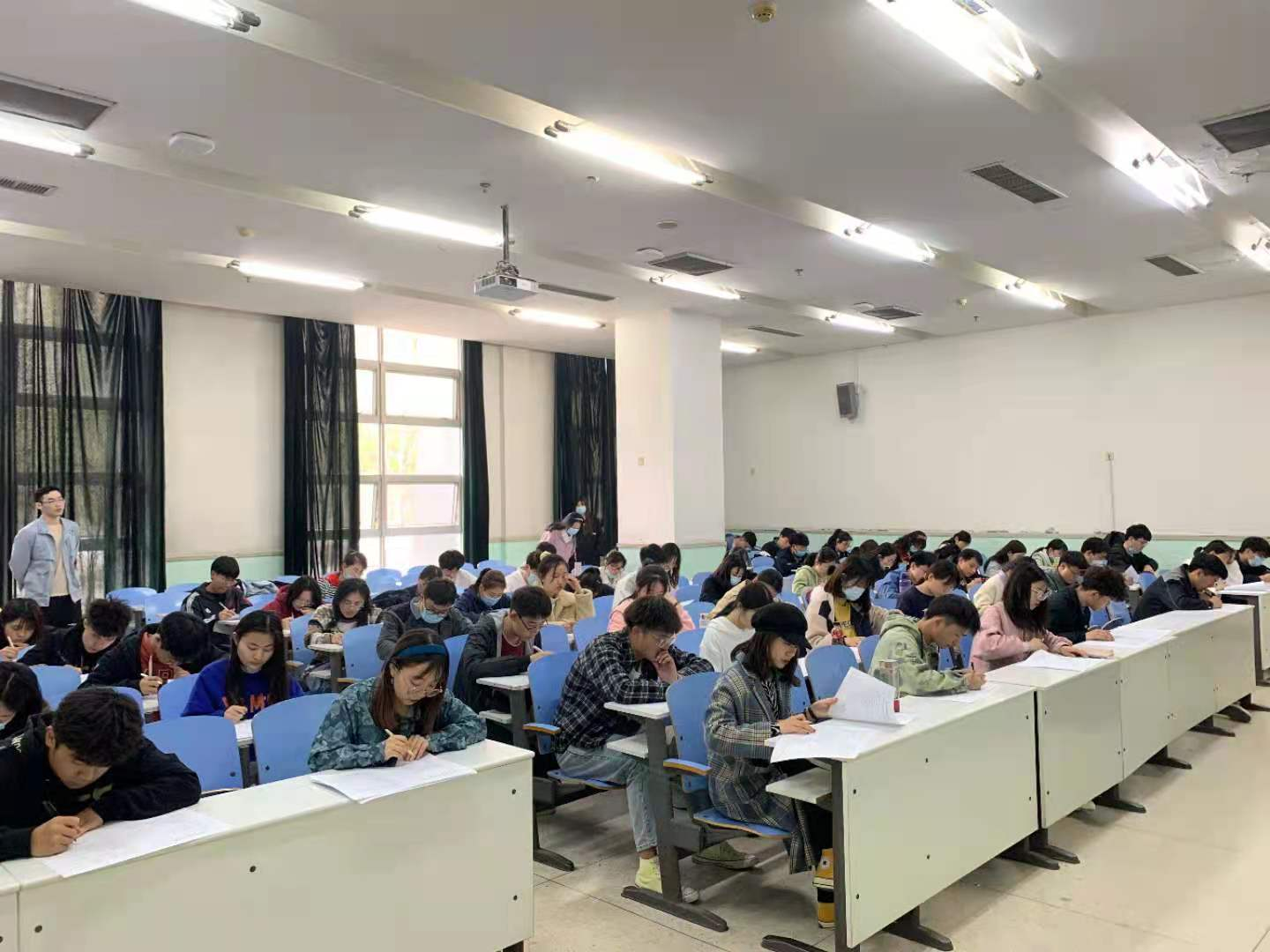 初赛以笔试形式举行。笔试开始前,工作人员组织到场同学签到,引导同学们按照座次表入座。随后,工作人员向参赛同学强调了考试注意事项并提醒大家诚信考试、认真作答。考试过程中,同学们自觉遵守考场纪律并认真完成试卷,考试氛围良好。经过一个小时的时间,考试顺利结束,工作人员将试卷收齐并组织同学们有序离场。