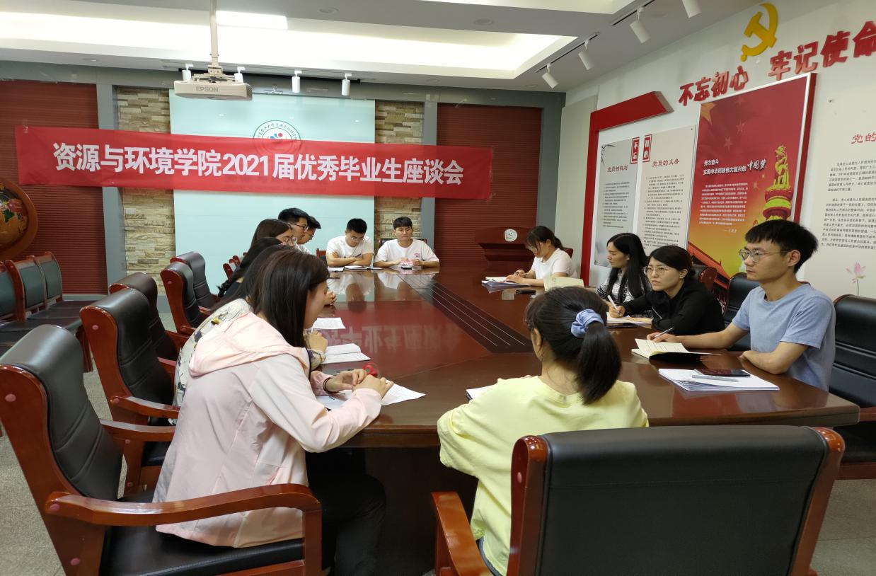 于6月1号下午在院办会议室举行2021届优秀毕业生座谈会。院党委副书记陈景红、团委书记王岚、辅导员黄春萌、霍培杰及2017级毕业生代表参加了会议。座谈会由王岚主持。