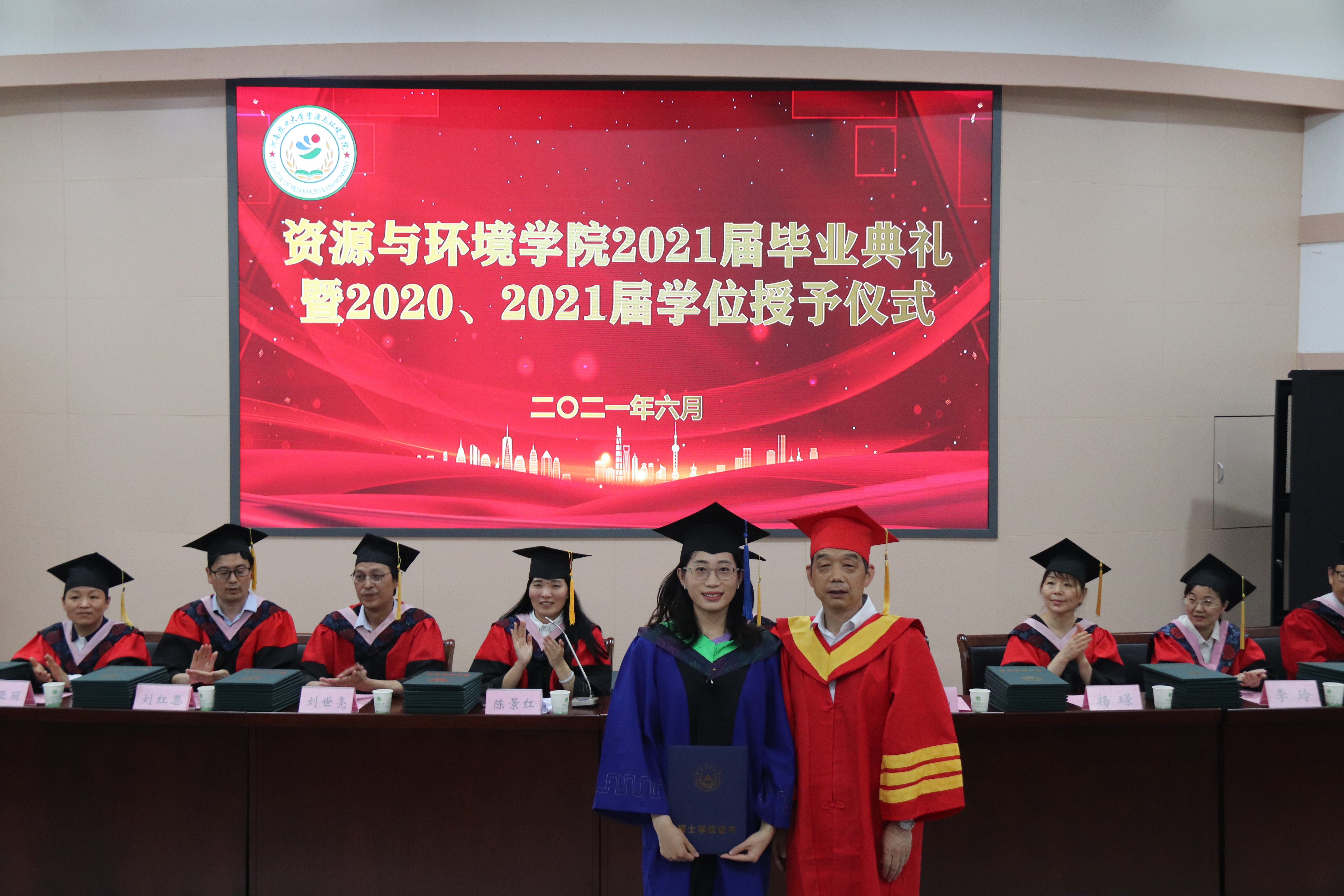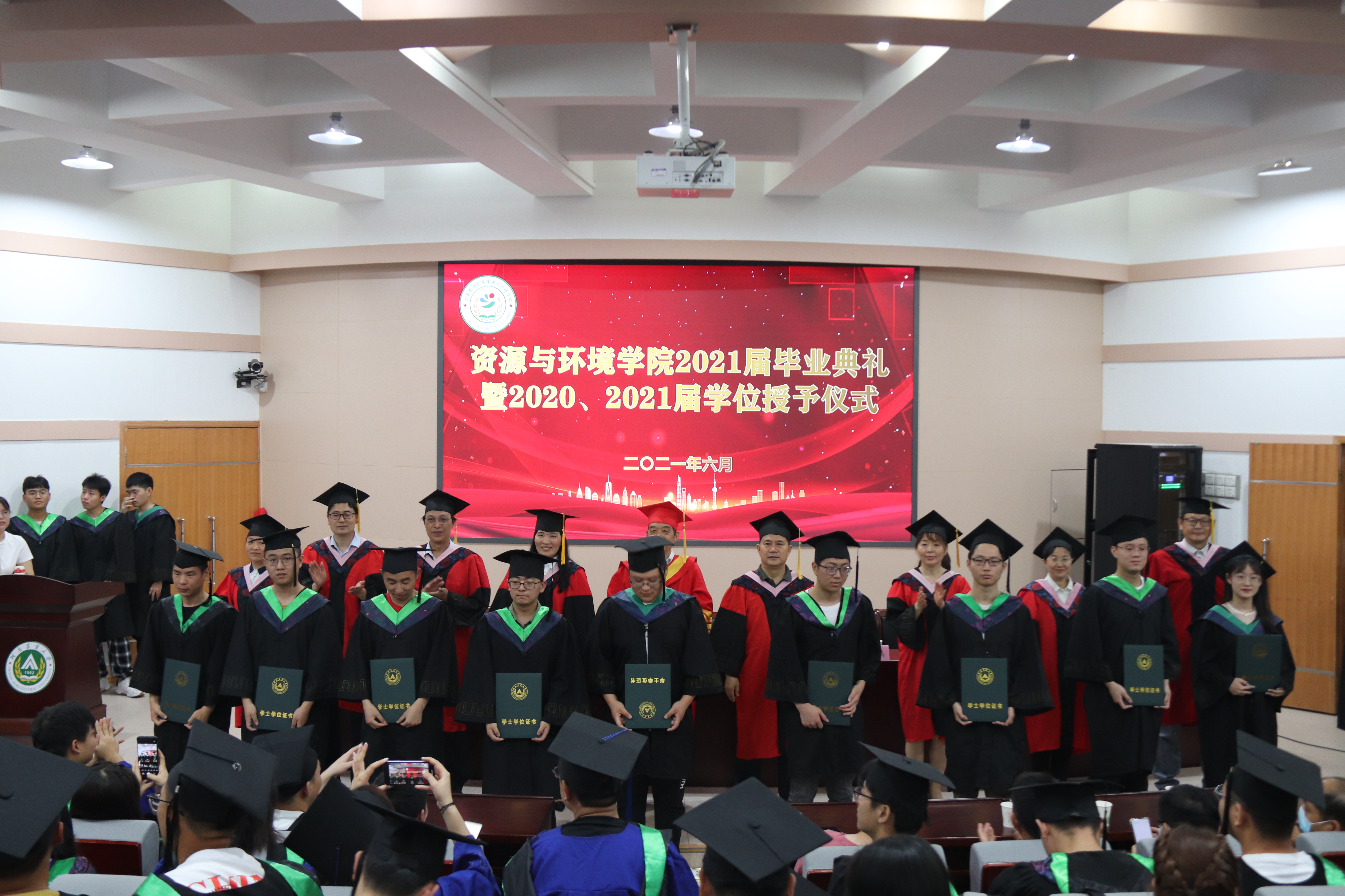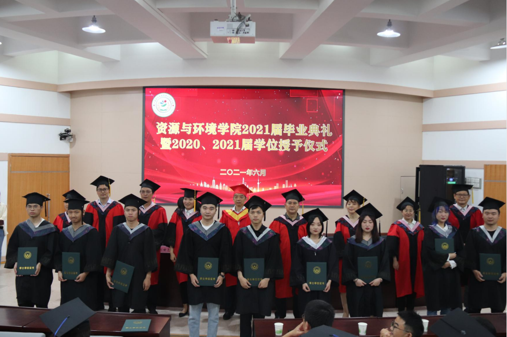 毕业典礼在庄严的国歌中拉开帷幕。会上,刘世亮副院长宣读了《关于表彰暗网禁区 2021届省级、校级优秀毕业生的决定》,并对优秀毕业生代表进行表彰。接着,进入学位授予环节。伴随着轻快的音乐,全体院领导依次为2021硕士毕业生、2020届本科毕业生以及2021届本科毕业生颁发学位证书、拨流苏,并进行合影留念。随后,毕业生代表杨一鸣同学进行发言,他回顾了四年大学生活,流露出对母校的眷恋、对同学的不舍,同时也代表2021届毕业生向学院老师表示衷心的感谢、致以崇高的敬意。资环系系主任刘红恩作为代表老师对毕业生临别赠言,表达了对同学们的深深祝福, 鼓励同学们积极承担使命,坚定前进信心,让青春在为祖国和人民的不懈奋斗中绽放绚丽之花。