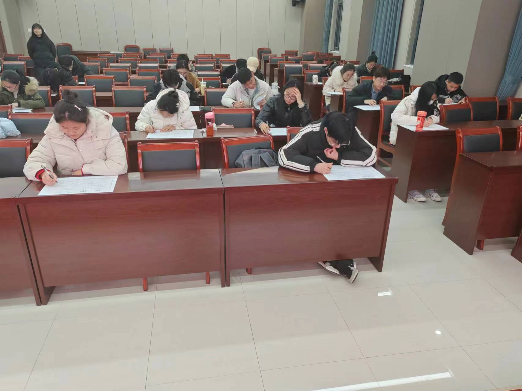 在力行楼338会议室举行第六期“青马工程”结业考试,全体“青马班”学员参加。