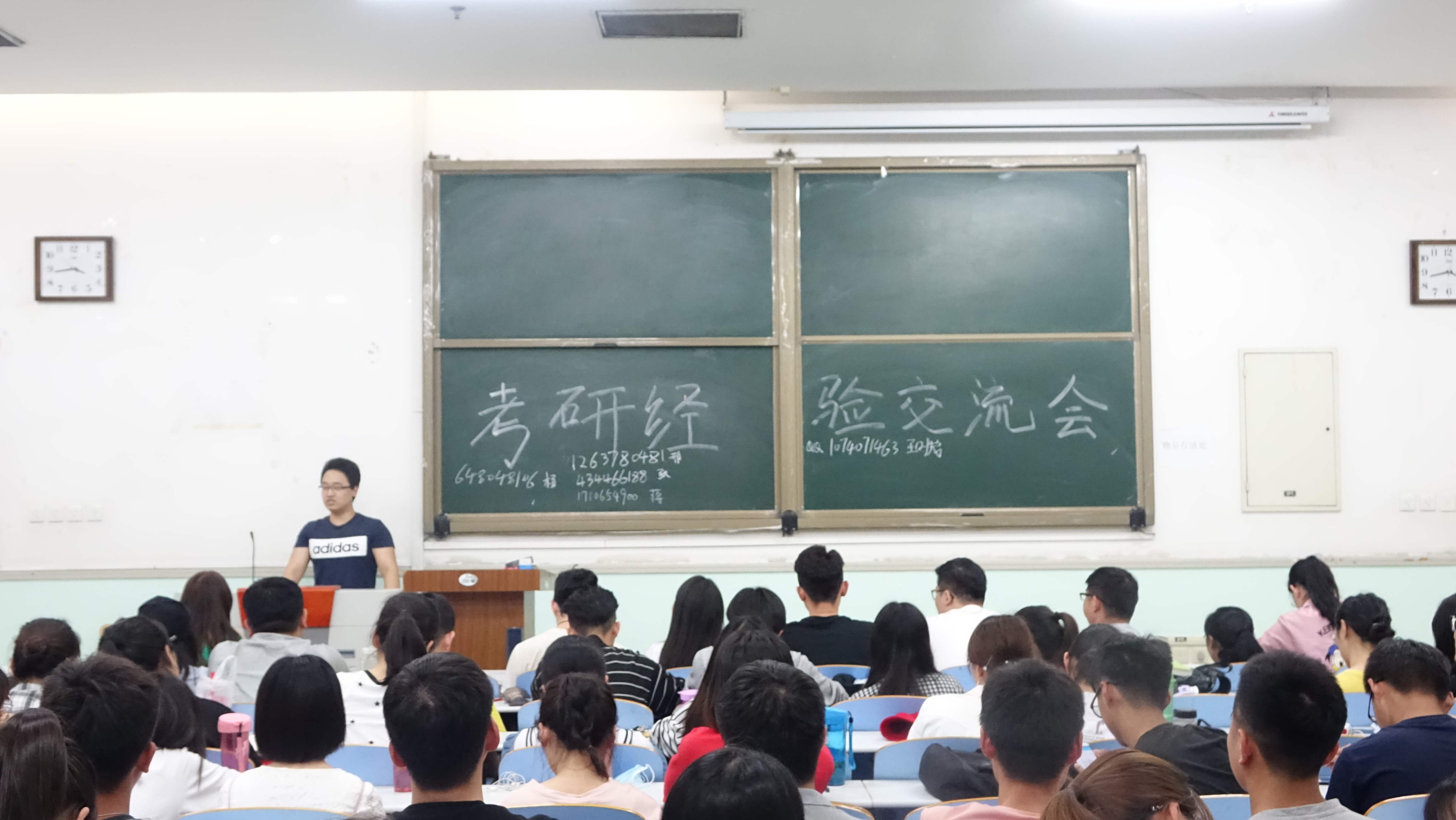 在工程楼102教室举办考研经验交流会,2018届毕业生代表及15、16级备战考研的同学参加了交流会,会议由15级团委委员梁敏和吕营营主持。