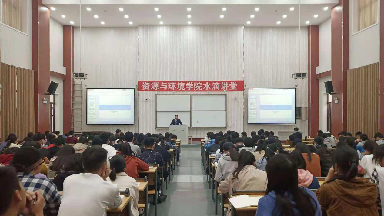 10月30日下午,全国人大代表、联合国-国际生态生命安全科学院“生态安全”院士党永富老师受邀做客资环学院“水滴讲堂”,在龙子湖校区大教室5为学院2018级新生做了题为《把握时代变迁,选择好你的人生路》的主题报告。院团委书记王玲参加此次会议,报告会由2018级新生辅导员蔡恩香主持。