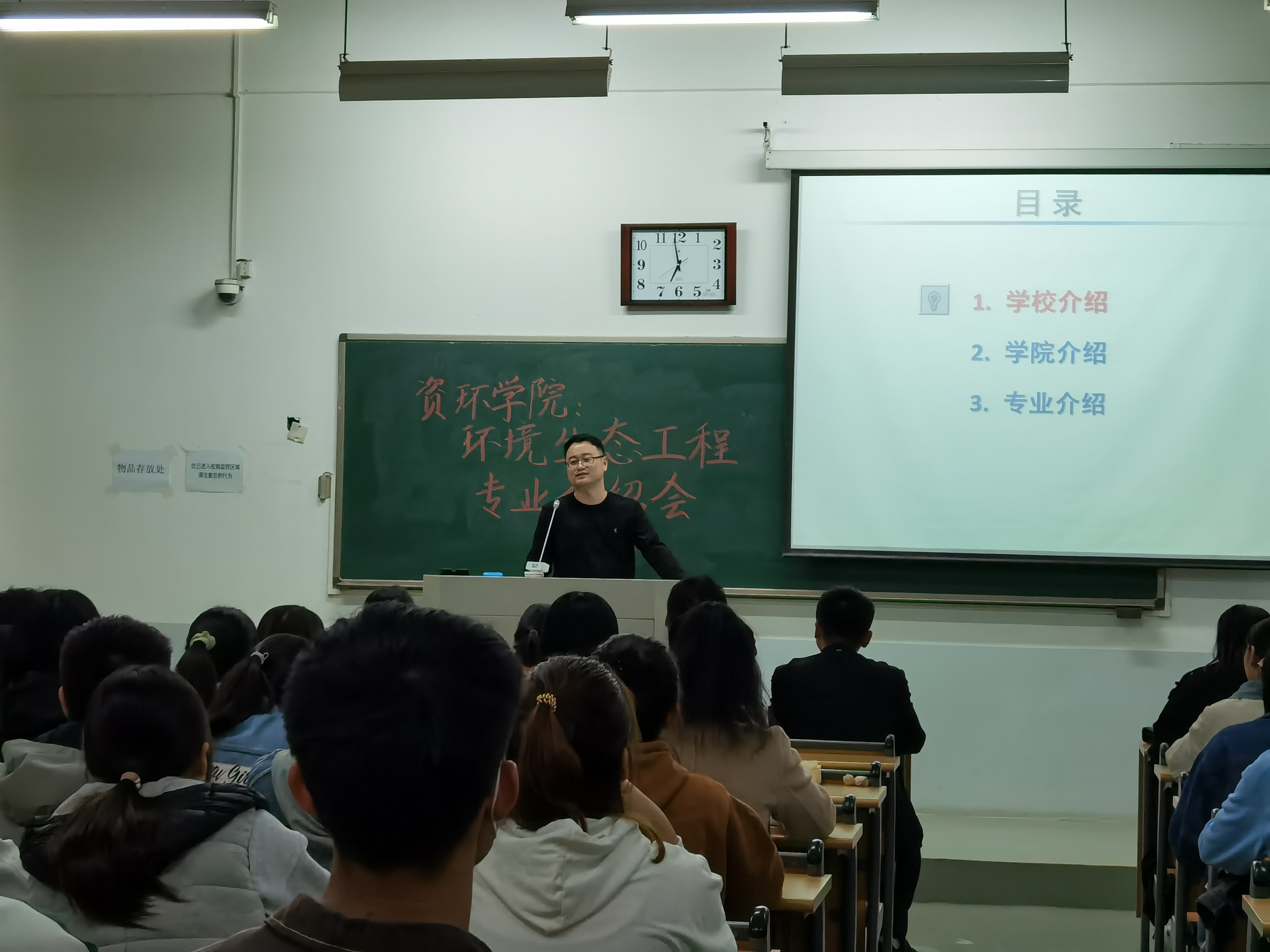 环境生态工程专业介绍会在龙子湖校区繁塔楼E210顺利开展。环境专业教师马双龙、张登晓、许嘉阳、黄岩、张静静、张雯雯、赵颖、王竞侦等出席介绍会,2021级环境专业新生共同参加。