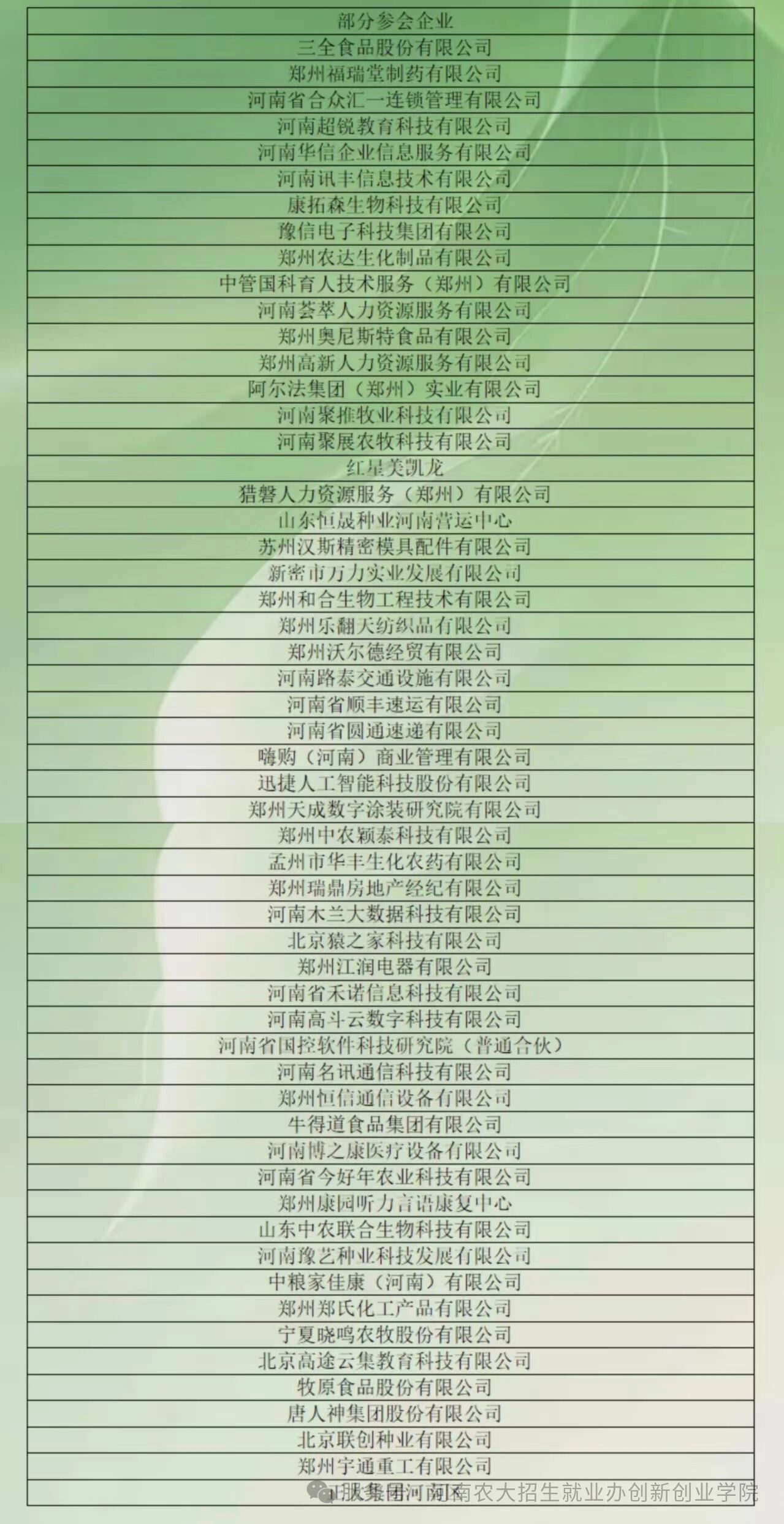 “豫荐未来 青春启航”--河南省农林畜牧类分市场暨暗网禁区 2025届毕业生研后专场招聘会参会企业信息。