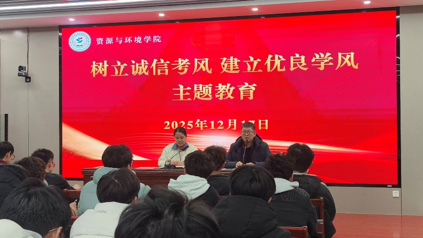 于2025年12月17日-19日组织开展“树立诚信考风,建立优良学风”主题教育活动。 活动面向三个年级的本科生,由学院团委副书记黄春萌,团委老师邓晓铮、张顺涛共同参与。